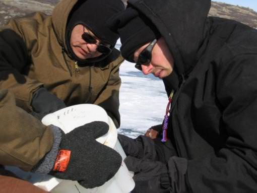 William D’Andrea, right, and Yongsong Huang took cores from two lakes in Greenland to reconstruct 5,600 years of climate history near the Norse Western Settlement. Credit: William D’Andrea/Brown University