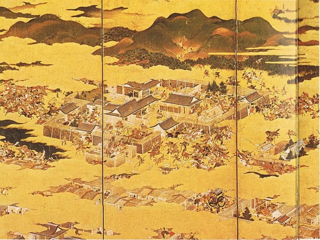The first section of this chapter outlines Kyotoʼs spatial transformation from the unified, mononuclear city of the classical era, into what, by the medieval era, is perhaps best characterized as a loose conglomeration of disparate nodes of urban development. The gridroad system began to break down in the tenth century when the western half of the old city, Ukyō 右京, failed to thrive and was eventually converted almost entirely into farm land. Concurrently, the eastern half of Sakyō 左京 enjoyed rapid population expansion, eventually leading to urban sprawl extending to the north and east beyond the boundaries of the original city. It is possible to trace from about this time the formation of two distinct residential districts in the east, each with its own unique sociopolitical flavor. Kamigyō 上京, in the north, was home to the capitalʼs civil aristocracy as well as several successive reigning and retired emperors. In the south was Shimogyō 下京, where clustered the homes, business, and workshops of the cityʼs many commoners. From the twelfth century, the capitalʼs original spatial structure underwent further change with the emergence of private institutions of wealth and power (kenmon 権門). Many of these kenmon, including retired emperors, temples, and eventually, warriors, built large bases of power on the cityʼs outskirts. Thriving communities formed around these centers of wealth, and in time, the people of each came to orient their lives more toward their respective kenmon centers than to the capital itself.