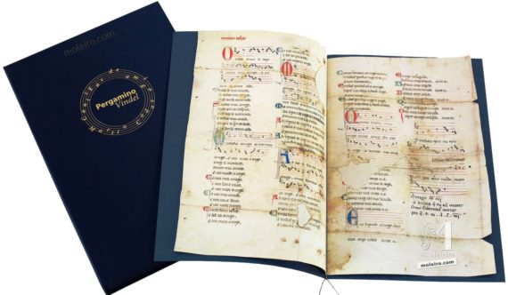 The year 1914 remains an important one in the study of medieval Galician-Portuguese poetry and music accompanying it. In that year the Madrid bookseller Pedro Vindel revealed his discovery of a single parchment leaf in the 18th-century binding of a 14th-century manuscript copy of Cicero’s De officiis. The leaf, known as the Pergamino Vindel, was ultimately acquired in 1977 by the Pierpont Morgan Library of New York.