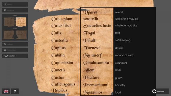Currently the fragments of the “Admonter Abrogans” are being presented in a special exhibition in the abbey. The cultural treasures have been made accessible through a multi-media presentation, which staff members of the Institute of Creative\Media/Technologies at St. Pölten University of Applied Sciences have designed. Visitors can zoom in on high-resolution images of the fragments, obtain background information on the details of discovery, display translations in Modern High German and other languages or guess beforehand which current term matches the Old High German original.