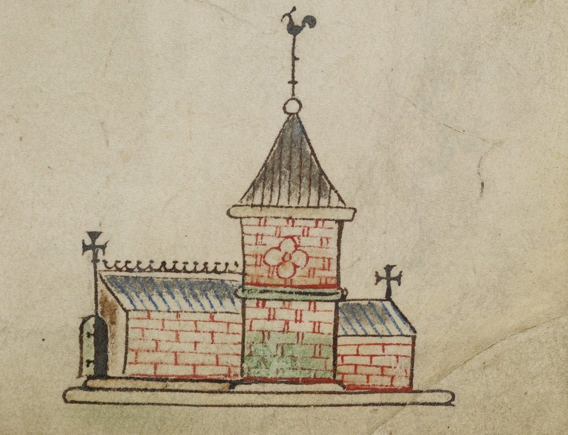 Top Image: Drawing of a house – British Library MS Royal 14 C VII f. 121
