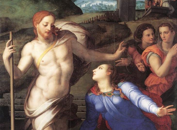 A painting, Noli me tangere by Angolo Bronzino (ca. 1560) (A), shows darkening of green copper pigment in a light-exposed area (C) but not in an area protected by the frame (B). Image credit: Adapted from Inorganic Chemistry 2019