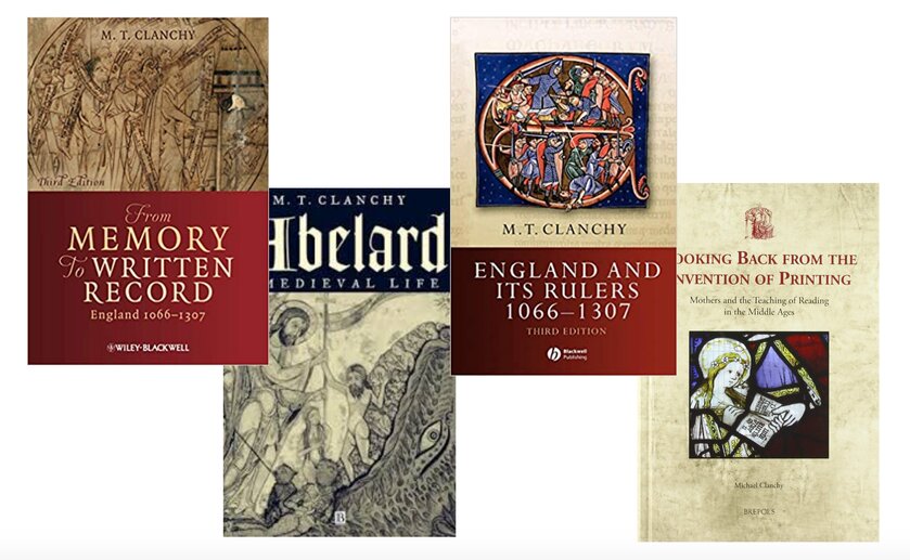Clanchy was well-known, and widely praised, for his book From Memory to Written Record: England 1066–1307, first published in 1979, which one historian called ” the most important study on records-keeping I have ever read.” The book examines how medieval England shifted from a non-literate to a literate society. Clanchy also wrote England and its Rulers, 1066–1272: Foreign Lordship and National Identity, a widely used textbook, and other works such as Abelard: A Medieval Life and Looking Back from the Invention of Printing: Mothers and the Teaching of Reading in the Middle Ages.
