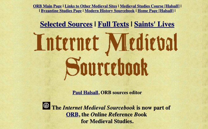 sourcebook01 by Medievalists.net April 24, 2021Related PostsThe Internet Medieval Sourcebook turns 25 years old AdvertisementSubscribe to Medievalverse Email address First name Last name I consent to receiving your weekly newsletter via email. Subscribe Powered by EmailOctopus Post navigationPrevious Post Previous Post