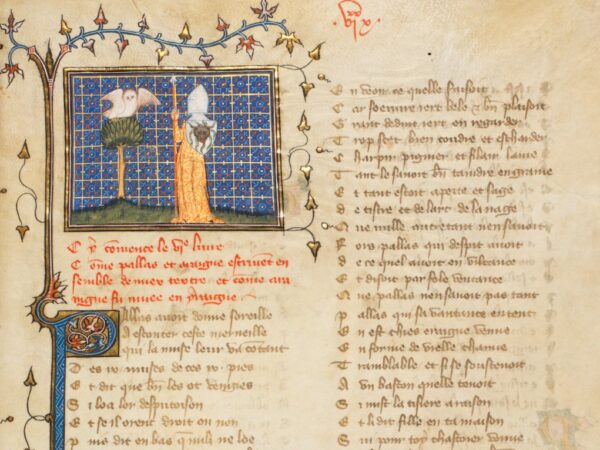 Image of Pallas Athena in a copy of the Ovide moralisé (Genève, Bibliothèque de Genève, Ms. fr. 176, f. 134r)