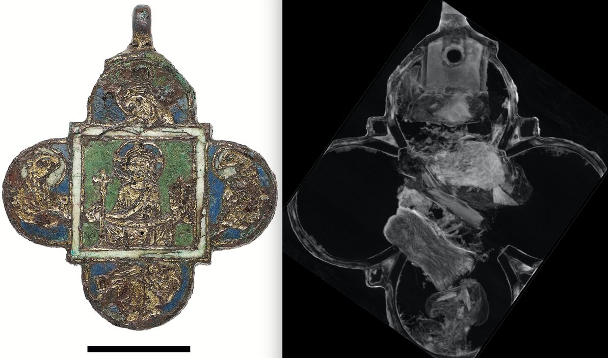 The research was carried out by a team from Leibniz-Zentrum für Archäologie (LEIZA), part of the Technical University of Munich. They used tomography and Prompt Gamma Activation Analysis (PGAA) with neutrons to scan the interior of the pendant. It revealed five individual packets made of silk and linen, with bone splinters packed in each. They believe the bone splinters were religious relics.