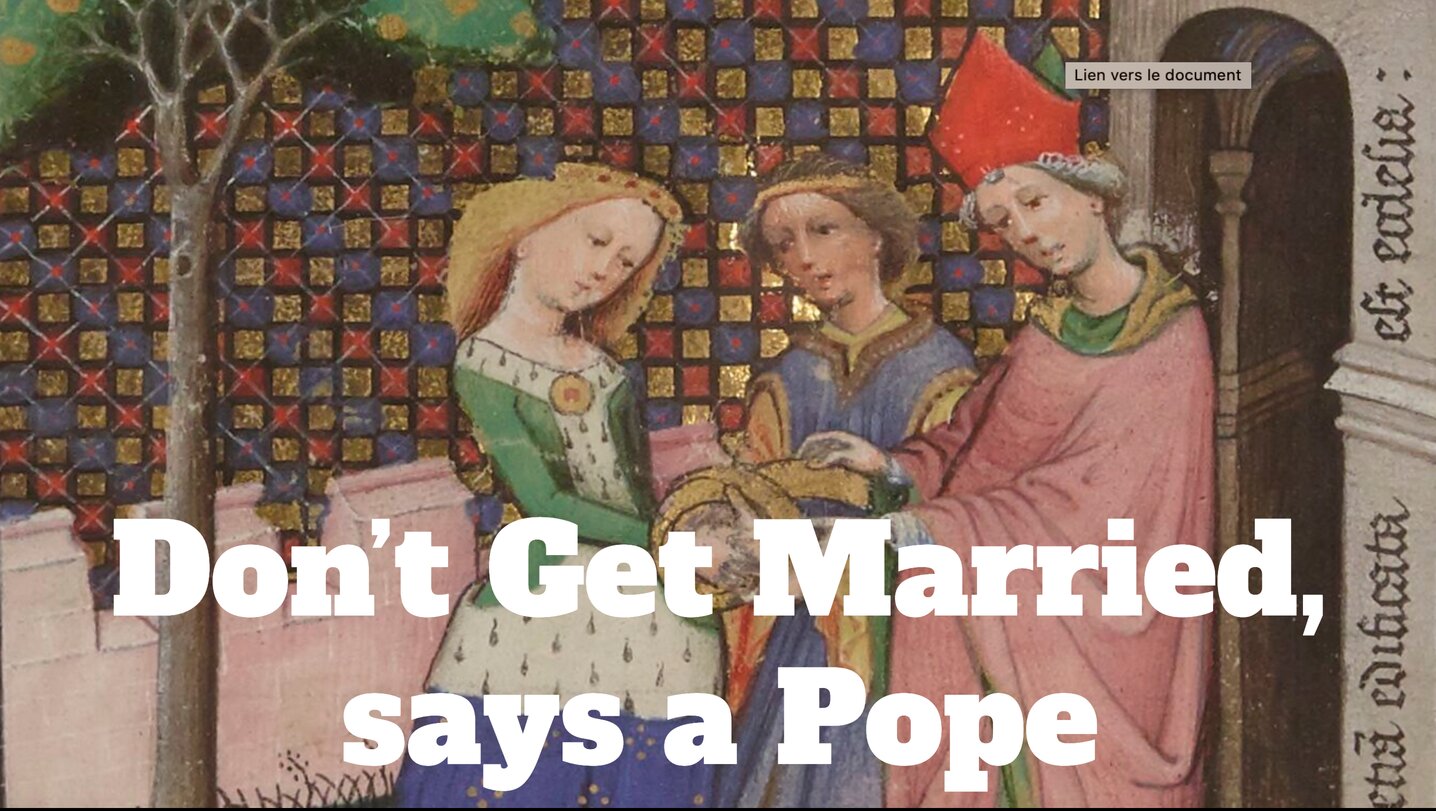 It sounds like a joke from a men’s magazine, but this list of ten reasons not to get married was created in the Middle Ages, by a man who became a Pope.