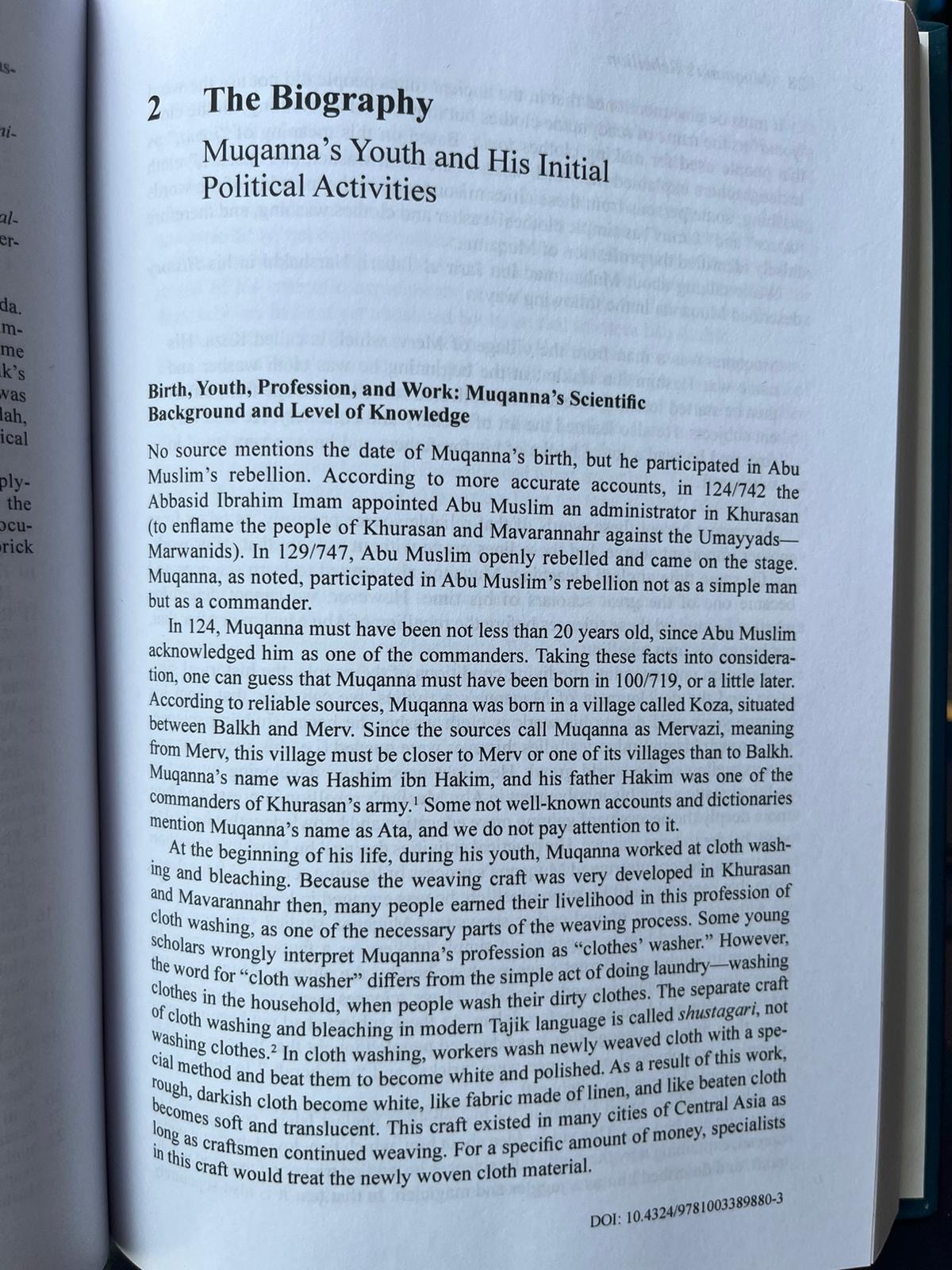 Here are translations of two works by a Tajik historian – the first deals with Al-Muqanna, an 8th-century military leader who rebelled against the Abbasid Caliphate, and the other is on Temur Malik, who fought against the Mongols in the 13th century. Both are important figures in medieval Central Asian history.