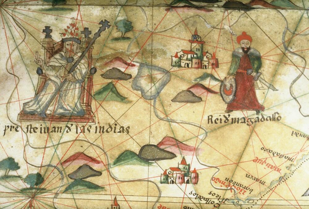 Prester John of the Indies. Close-up from a portolan chart. Bodleian Library MS. Douce 391