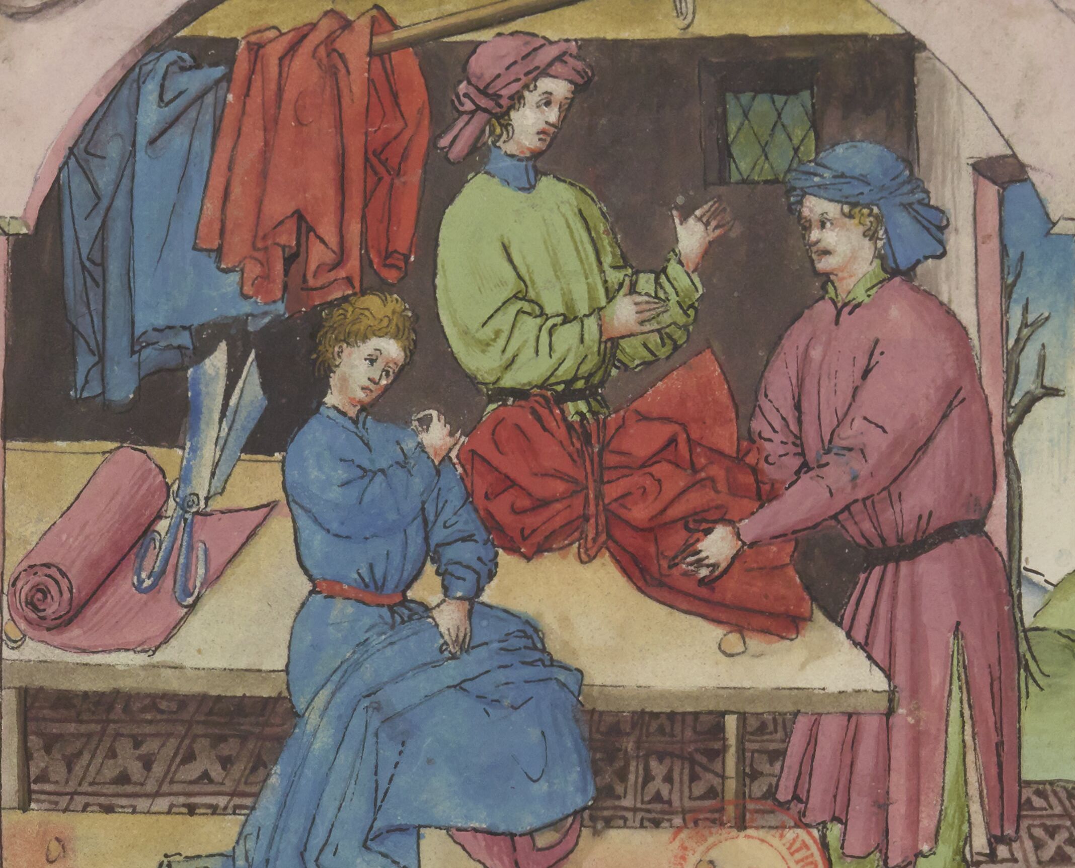People wearing belts in this 15th-century copy of Tacuinum sanitatis – BNF Latin 9333 fol. 104r
