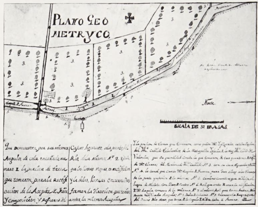 Fig. 2: Plans of irrigated fields on the Benifurt Canal Jativa, Valencia Region. Retrieved from Glick, p.17