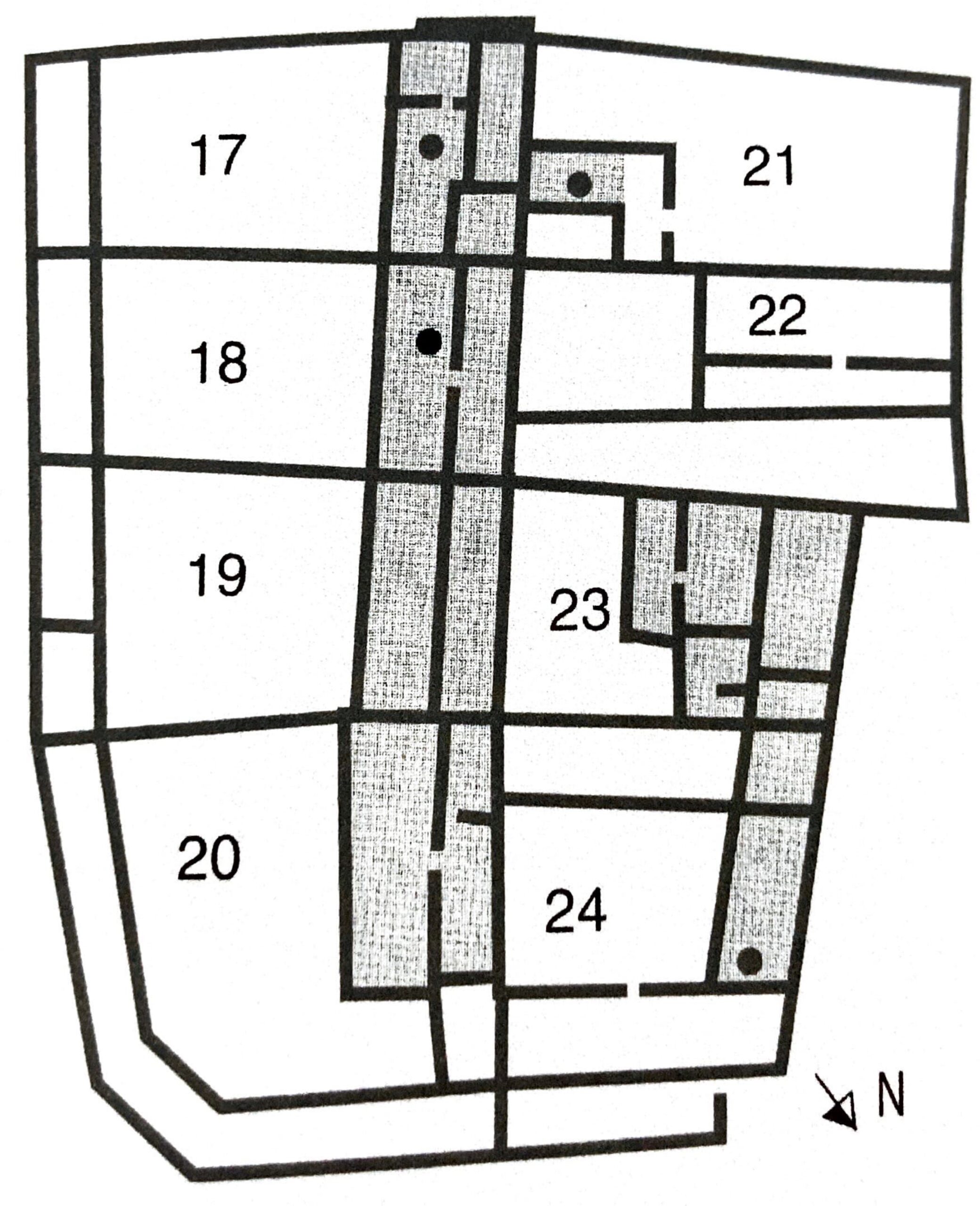 These examples of village houses indicate that they are not as grand as those found in urban cities like Valencia or Granada themselves. However, the layout of these homes is similar, as they still had to follow Islamic law codes, such as where to direct smoke and how to manage the drainage of water and waste. Emphasis was placed on the privacy of the family, particularly the women, within the home. As a result, most houses had an ‘L-shaped’ corridor that concealed the interior and lacked front windows; however, the design of these buildings varied. Therefore, a number of these features differ in the rural context, such as the use of the courtyard as a cooking/garden space (Fig. 6 – Shaded area). Excavations also revealed a public bath and four wells within the confines of the village.
