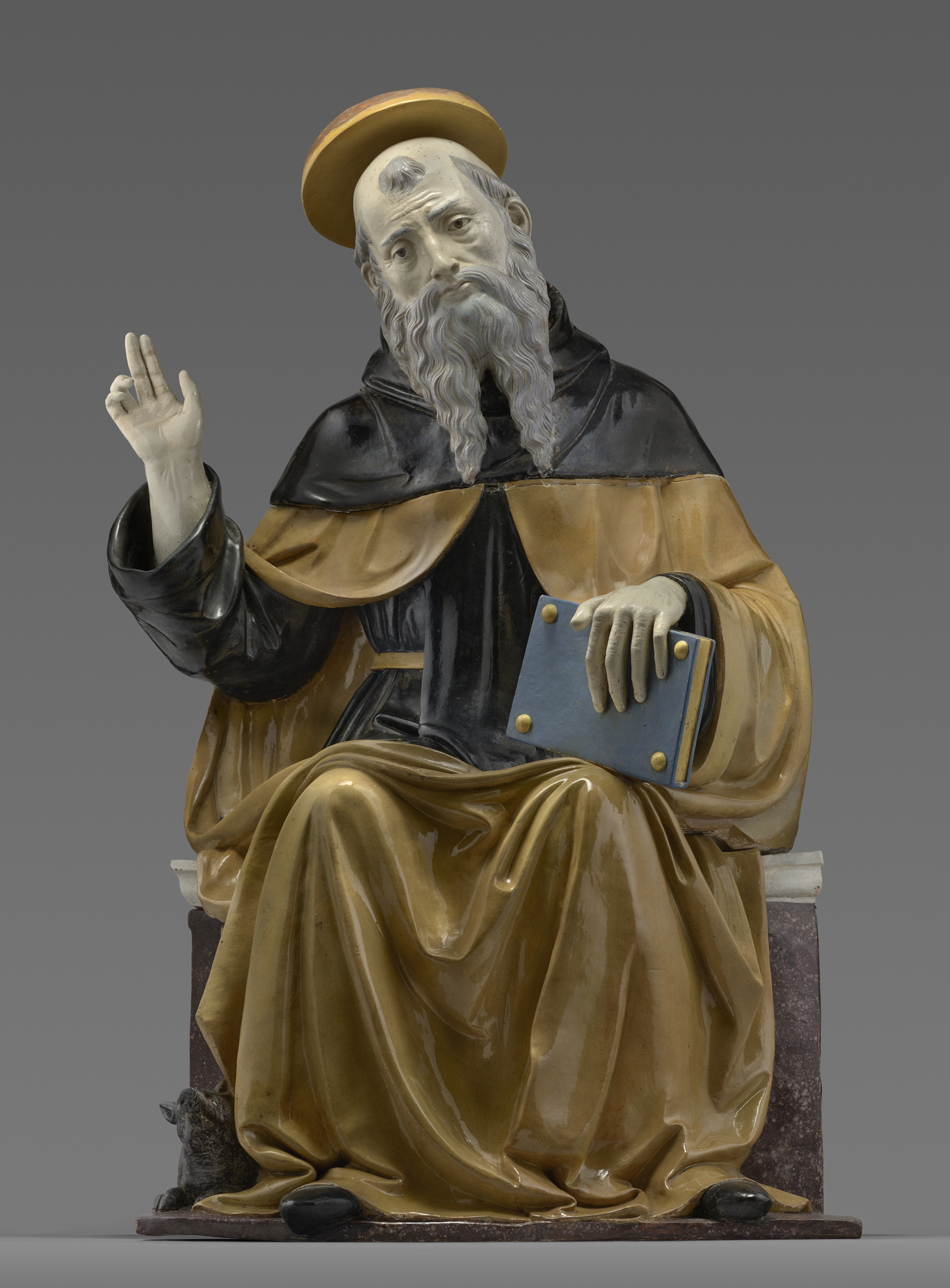 Saint Anthony the Abbot – About 1510 – 1515 – Andrea della Robbia (Italian, 1435 – 1525) Glazed terracotta 134 × 88 cm (52 3/4 × 34 5/8 in.) Getty Museum 2025.33