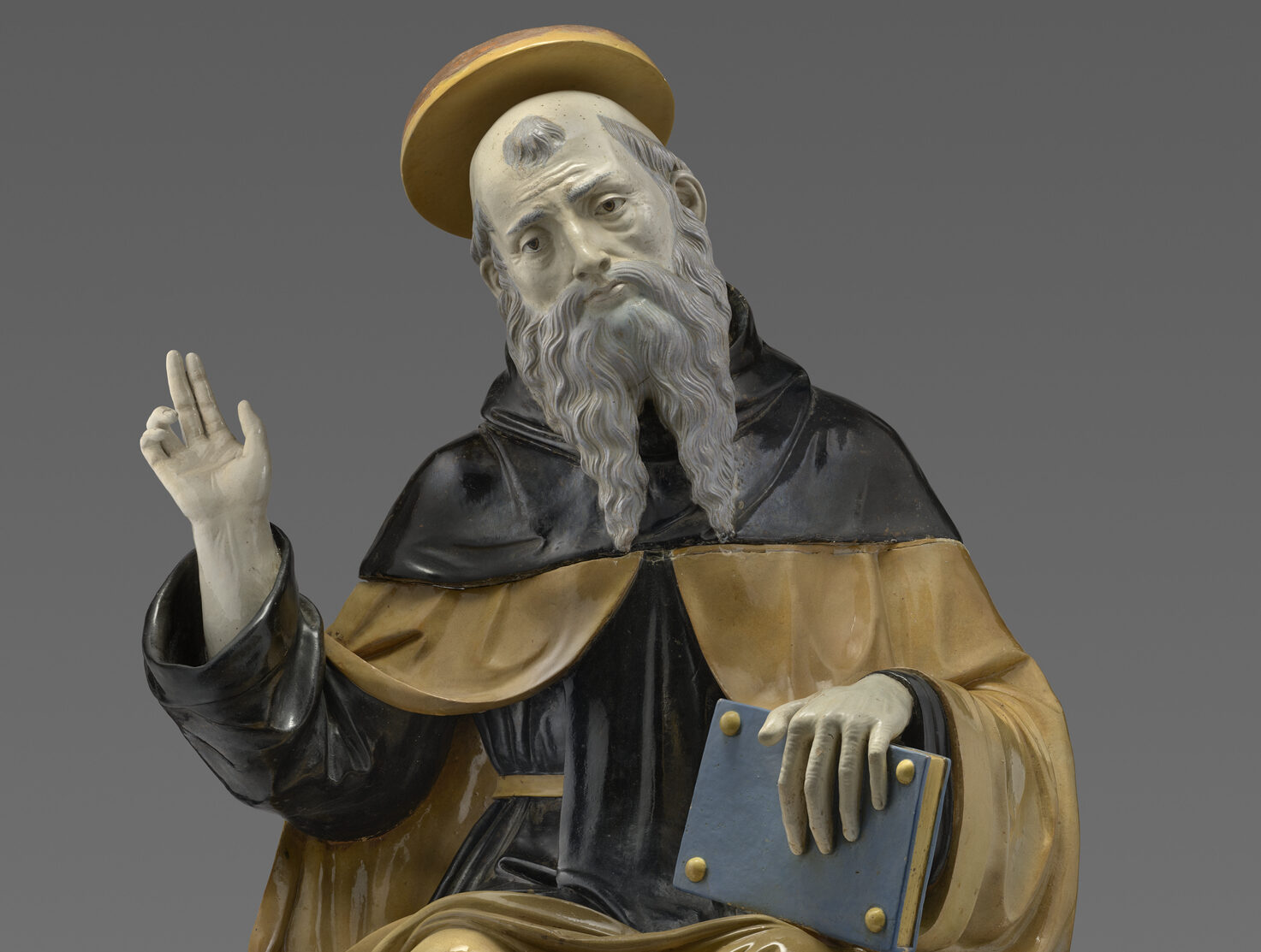 Created between 1510 and 1515, the sculpture likely originated in Tuscany. Andrea della Robbia expanded upon his family’s pioneering glazing techniques to produce a wider palette of colours and larger, more intricate designs. As with many monumental terracotta works, Saint Anthony the Abbot was fired in separate sections. The piece is notable for illustrating rural devotion and is the first grand-scale glazed terracotta sculpture to enter the Getty’s collection.