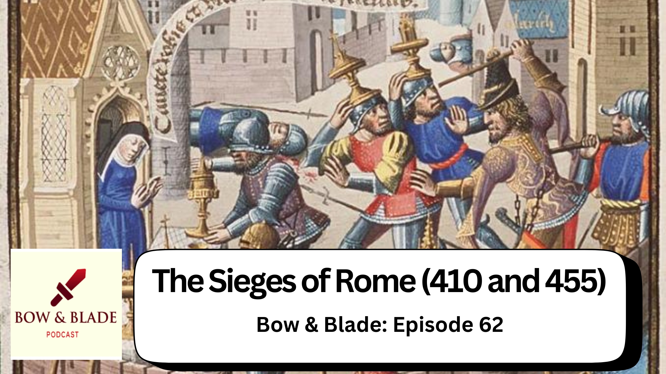 As the Eternal City’s power waned, enemies closed in. In this episode of Bow & Blade, Michael and Kelly delve into two devastating sieges of Rome — one led by the Goths, the other by the Vandals.