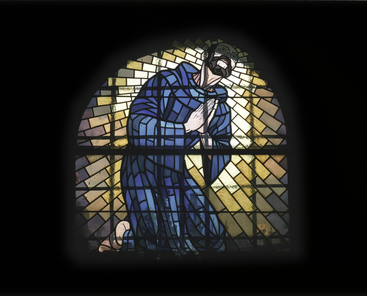 Stained glass in the Church of Saint Nicholas in Krucemburk, depicting Saint Prokop. Photo by Taťána Binková / Wikimedia Commons