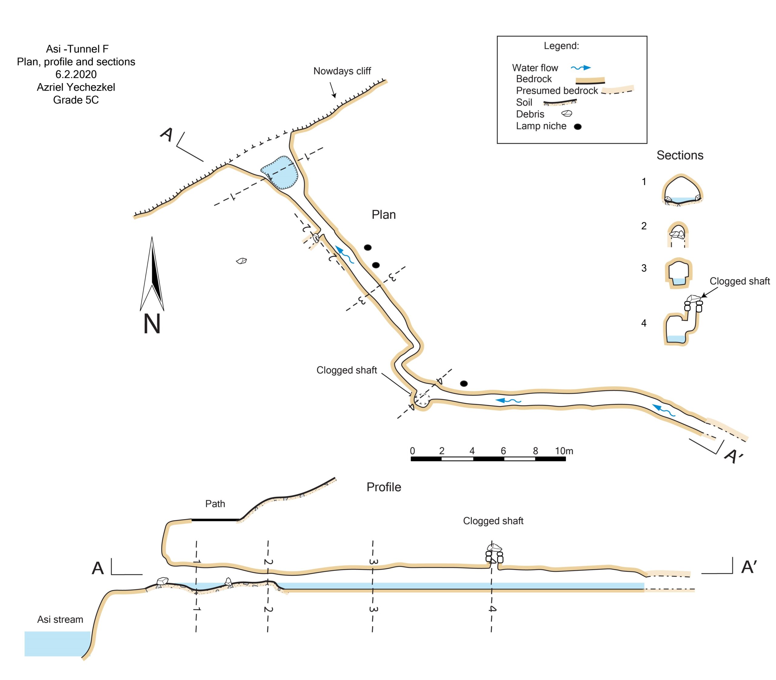 The research team documented six main tunnels along Nahal ‘Amal. Five entrances on the north bank form an interconnected system, while a sixth, on the south side, differs in shape and elevation, possibly reflecting a separate or earlier use. The tunnels include niches for oil lamps carved into the walls, and traces of slow-moving water on the rock surfaces indicate long-term flow. Some sections may have functioned as overflow channels to relieve pressure when the mills were inactive.