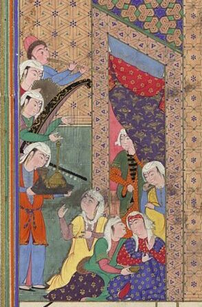 According to Kaikavus, “they also say that the singer should be blind, deaf, and mute,” meaning he should never speak of the things he sees going on at the host’s home to anyone else. Evidently some scandalous behaviour and talk went on at these parties, and if the musician let it get out, the master of the house would not hire them again.