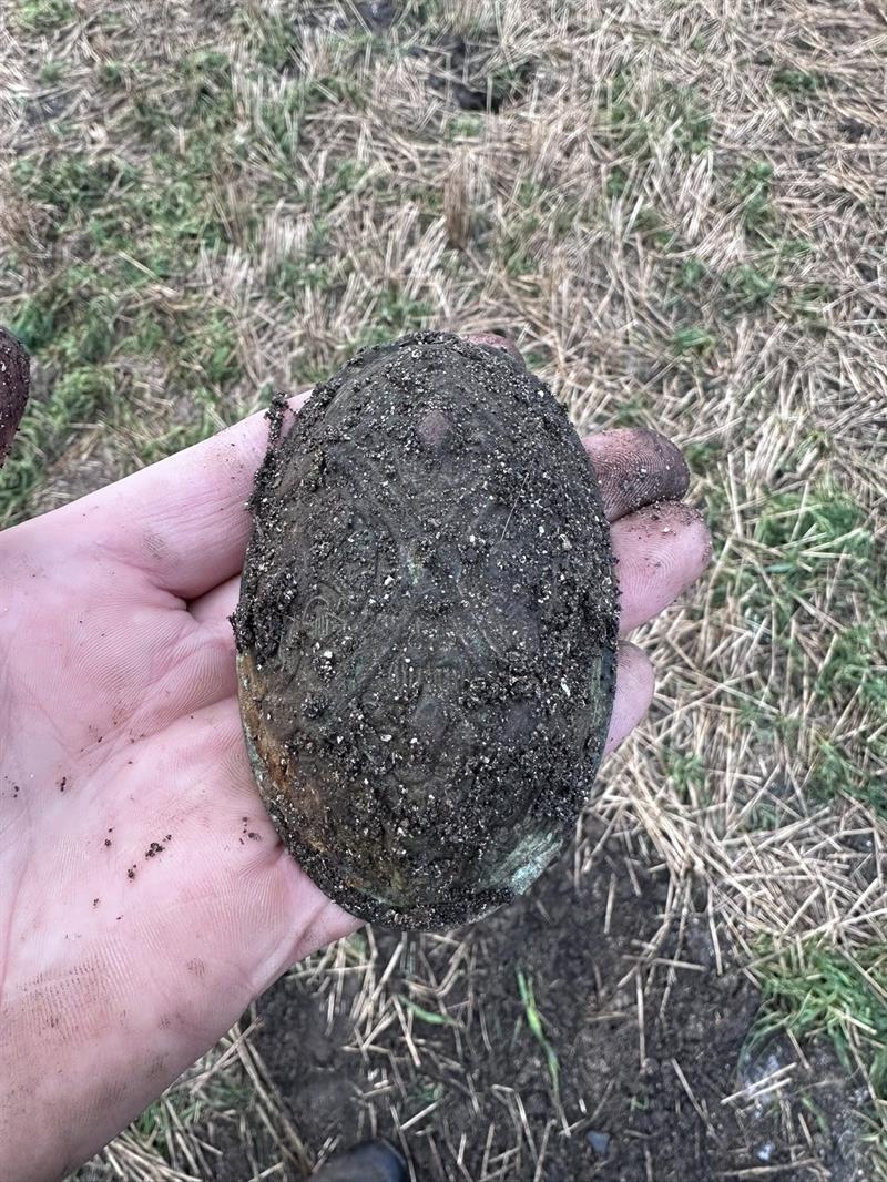 It was metal detectorist Roy Søreng who found the bowl buckle. Photo: Roy Søreng.