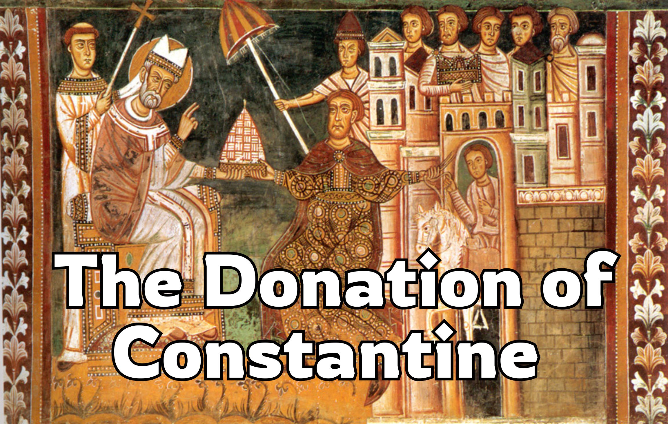 Top Image: A 13th-century fresco of Sylvester I and Constantine the Great, showing the purported Donation (Santi Quattro Coronati, Rome)