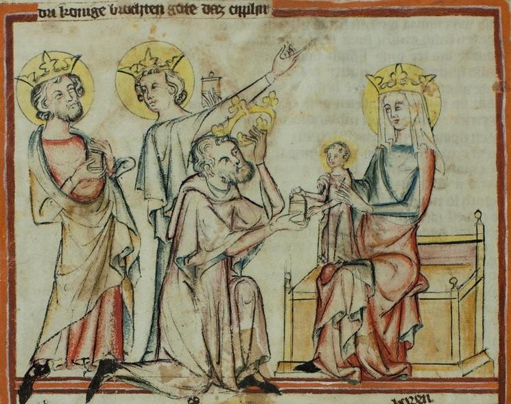 Epiphany depicted in a 14th-century manuscript = Badische Landesbibliothek Karlsruhe 3378 fol 28
