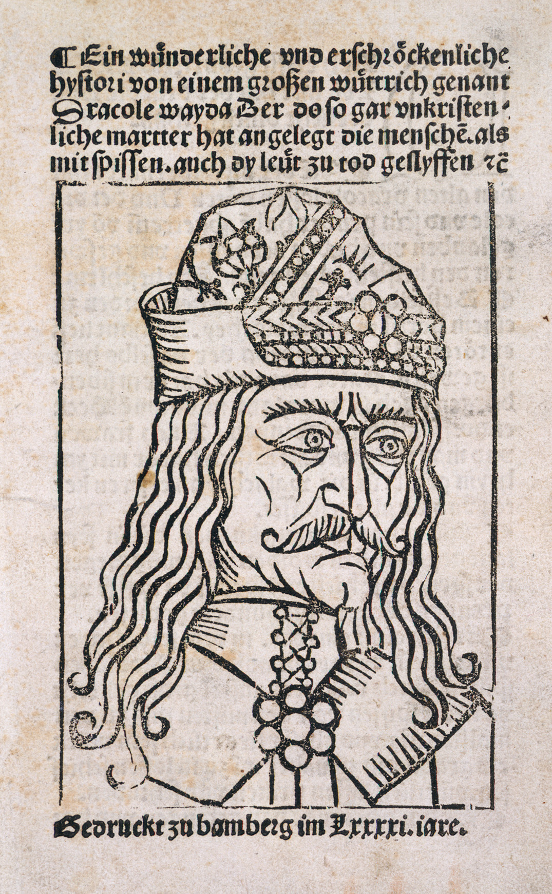 This image of Vlad appears in a German pamphlet from 1485.