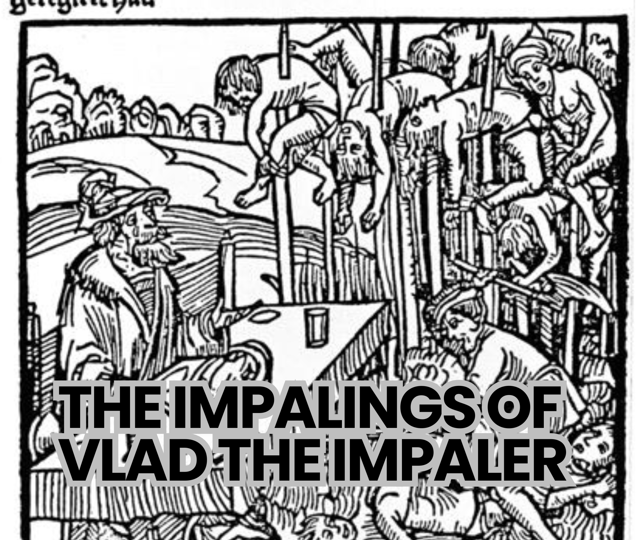 Woodcut from the title page of a 1499 pamphlet published by Markus Ayrer in Nuremberg. It depicts Vlad III “the Impaler” dining among the impaled corpses of his victims.