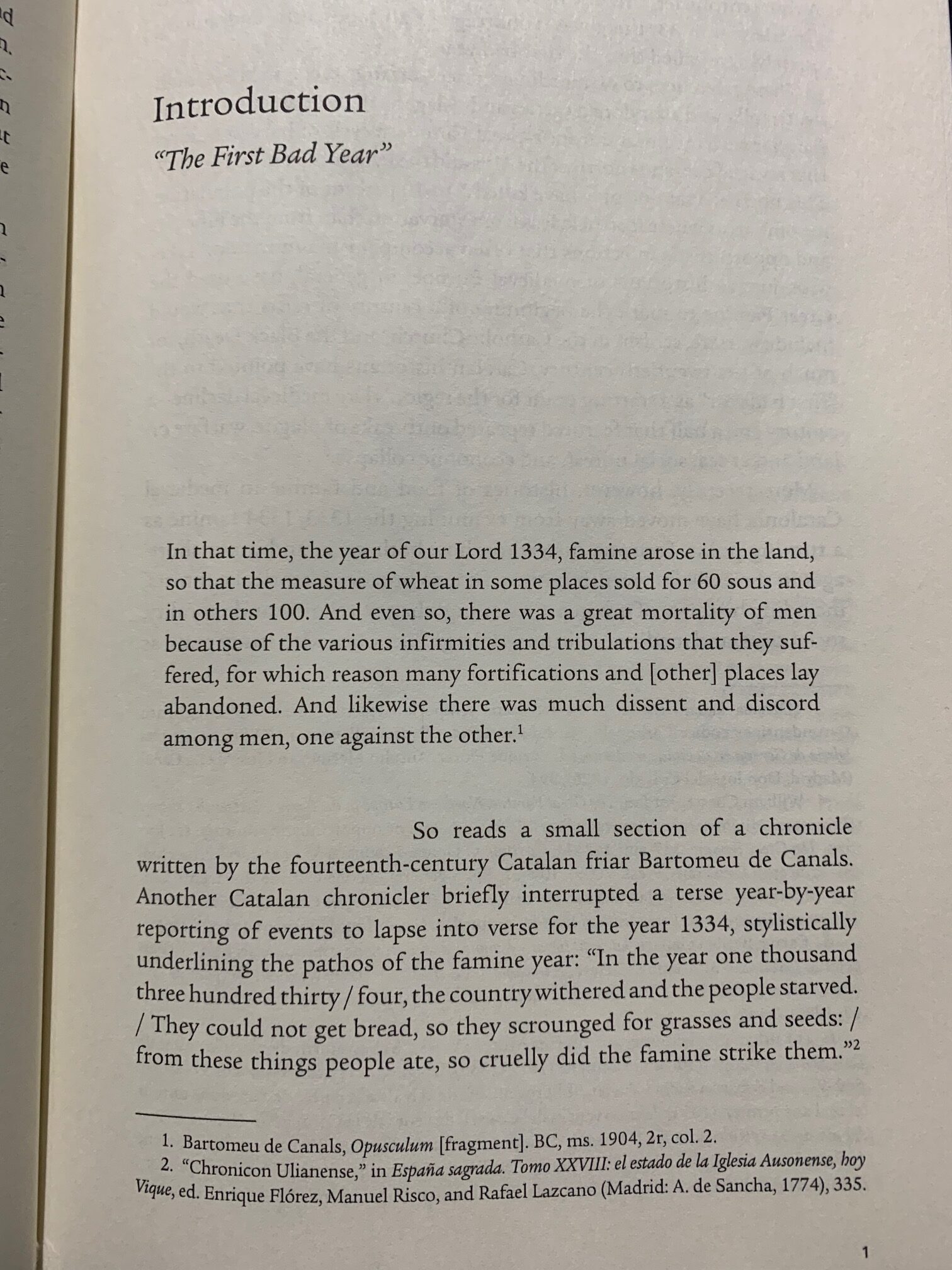 By focusing on a single year, this book attempts to draw together what have, up until now, been relatively distinct approaches to the history of the city, using the 1333/1334 famine not as an object of study in and of itself but rather as the frame for a portrait of the city as a whole. One obvious reason to focus on a year like this one is the increase in documentation that calamity tends to produce. But famine and shortage provide more than just a convenient trove of historical records. Food geographers have noted the many ways that food weaves its way through the social, political, economic, and cultural fabrics of any given time or place. Medieval Barcelona’s food system connected the city’s local, regional, and Mediterranean geographies, even as it bound together its rulers and ruled, its merchants, artisans, and laborers, its religious and secular authorities, its donors and recipients of charity, its insider and outsider groups. Food thus provides an ideal lens through which to view the whole of a society.