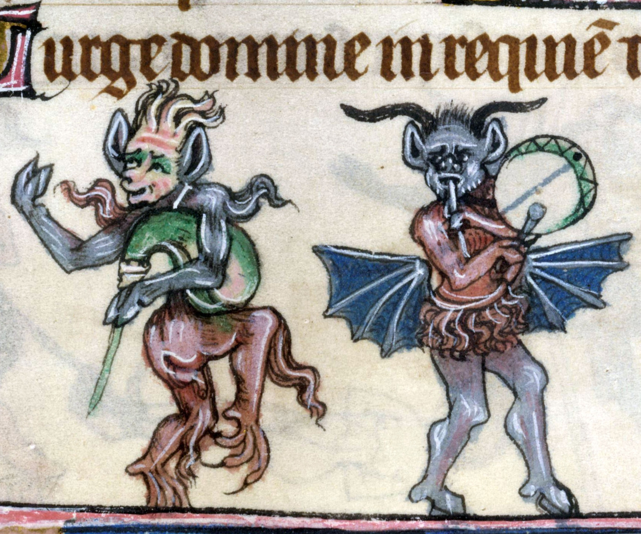 Top Image: A devil with a musical instrument – British Library MS Royal 10 E IV, fol. 201v