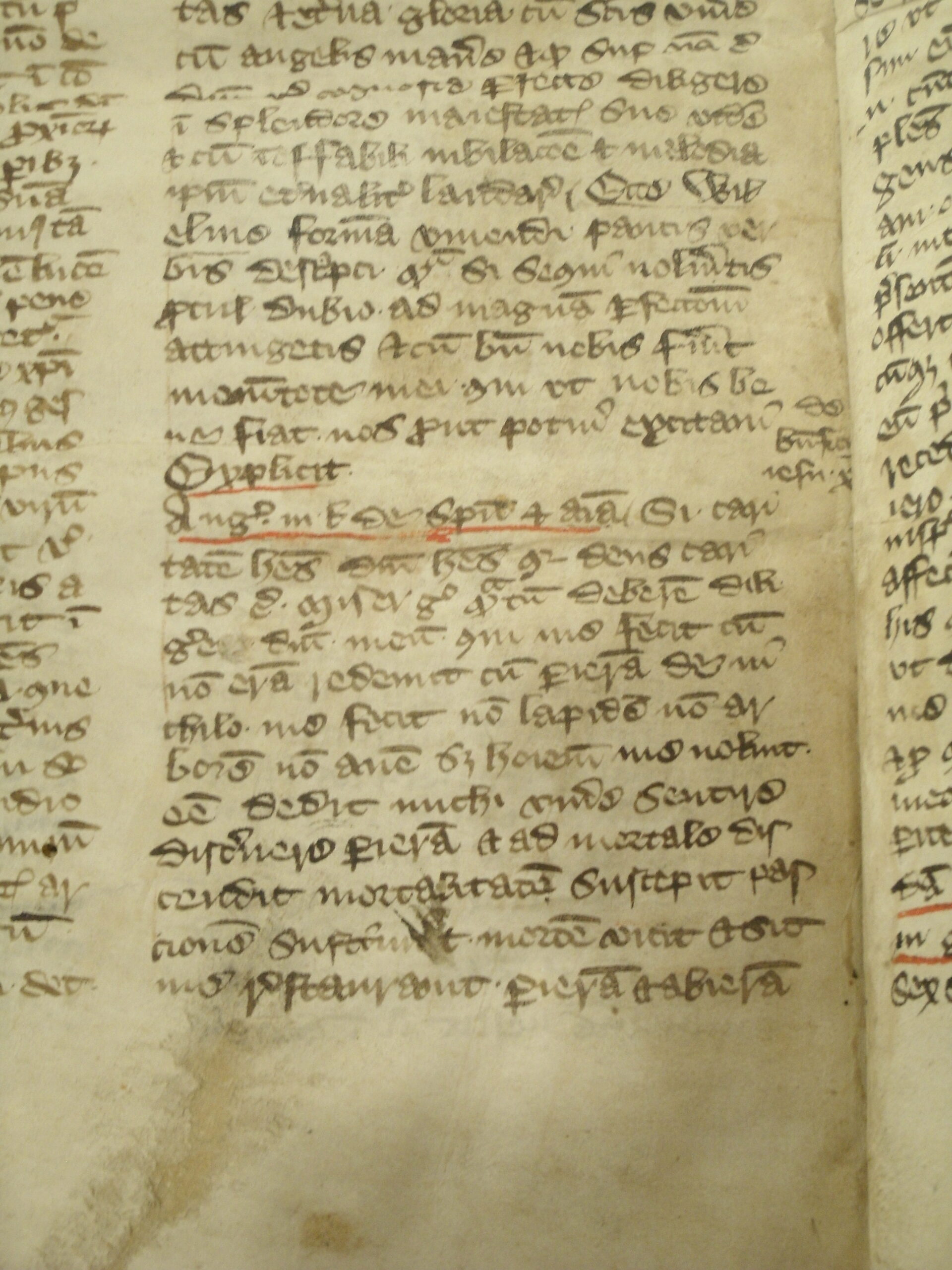 Chapter on prayer in Richard Rolle’s Emendatio vitae – Title ‘De oracione’ (‘On Prayer’) appears in the left-hand margin – Shrewsbury School MS 25. Image credit: Timothy Glover