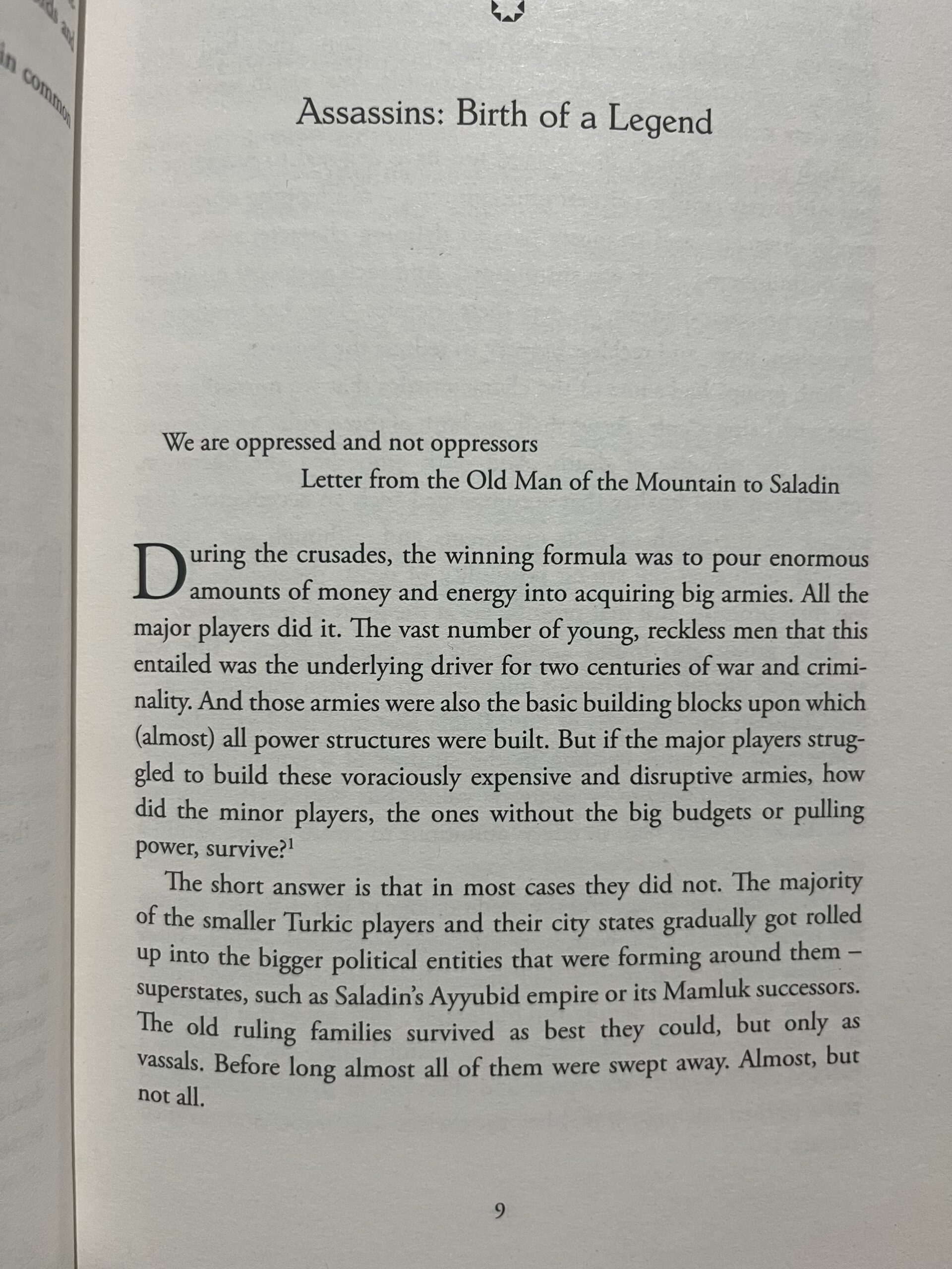 The Assassins and the Templars have become two of the most legendary groups of modern times. Although both have accumulated a huge deadweight of mythology and absurd conspiracy theories along the way, the roots of their intertwined story contain, oddly enough, much that is true and similar. The tactics were different, but their foundations were the same. The promise of unstoppable death might be ‘in your face’ in the form of a Templar charge. Or it could be unstoppable death ‘in your back’ in the form of an Assassin’s dagger. But death was at the core.