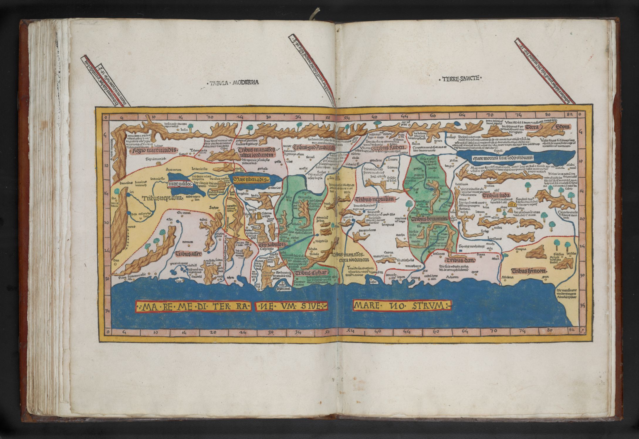 The ‘Modern Map of the Holy Land’ from the 1486 (1482) Ulm reprinting of Ptolemy’s Cosmographia (https://purl.stanford.edu/fs844yc9264).