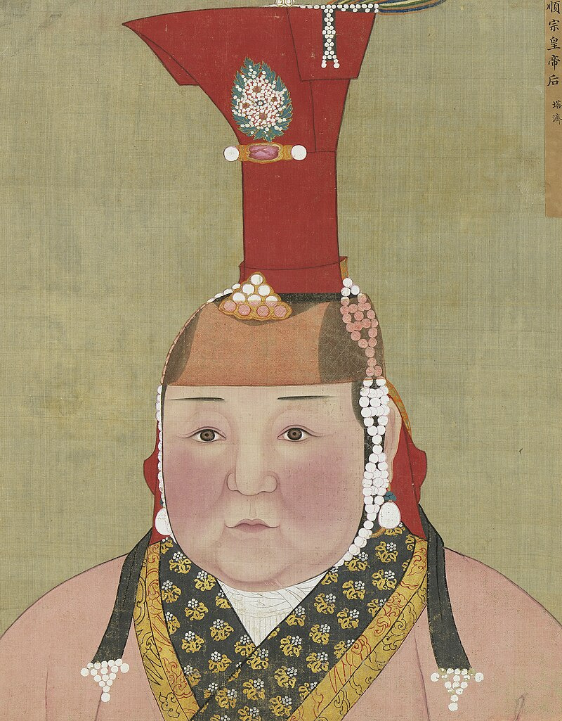Remarkably, Rubruck’s peculiar custom for married women —shaving the front of her head after her wedding— is actually attested in fourteenth century Yuan Dynasty portraits of empresses and concubines of the Great Khans, revealed by the see-through fronts of their boqta. Potential depictions of this custom in other Yuan or Ilkhanid artwork may simply be obstructed by the boqta lacking this sheer fabric.