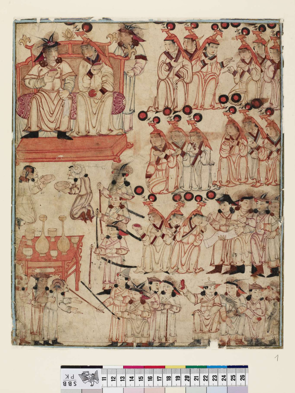 Figure 14: “Mongolische Thronszene.” Diez Albums, Diez A fol. 70, Page 103 S. 23 nr. 1. From a Jāmi’ al-Tawārīkh? Ilkhanate, ca. 1310