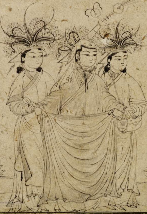 It was also a somewhat cumbersome item for daily life, making it difficult to go through doorways. Boqta were worn by married noblewomen, and there is little to suggest they were worn among lower-status women in the 1200s. They were worn for court events and ceremonies, a piece of formal clothing (Figure 14), and even these high-status women likely removed them for daily life for sake of convenience. If lower status or common women were wearing them, then they were likely much simpler, more manageable versions and not made of such rich materials.