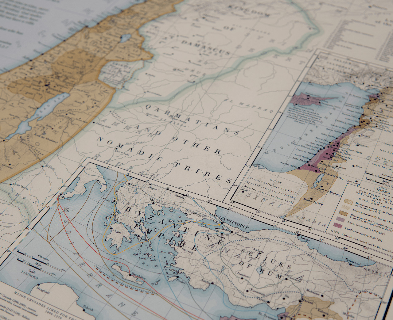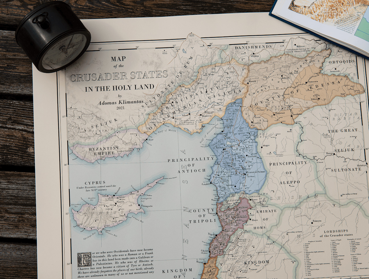 After receiving the approval of Professor Christopher Tyerman at Oxford, I decided to make the map available as a fine-art print, allowing anyone with an interest in the medieval world to enjoy it – framed (or not) on their wall – while reading the next volume in the long and fascinating literature of the Crusades.