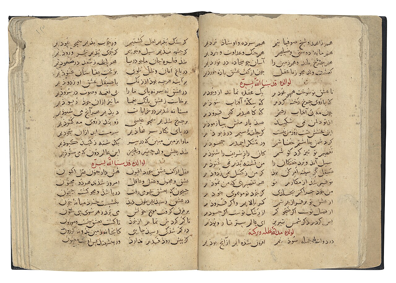 A Persian manuscript of the writings of Rumi from the Jalal al-Din Rumi (d. 1273) and the diwan of his son Baha al-Din Sultan Walad, Seljuk Anatolia, late 13th – early 14th century – Wikimedia Commons