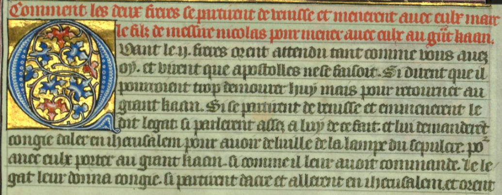 Marco Polo, Livre des merveilles du monde, excerpt of a 15th century French manuscript of it.
