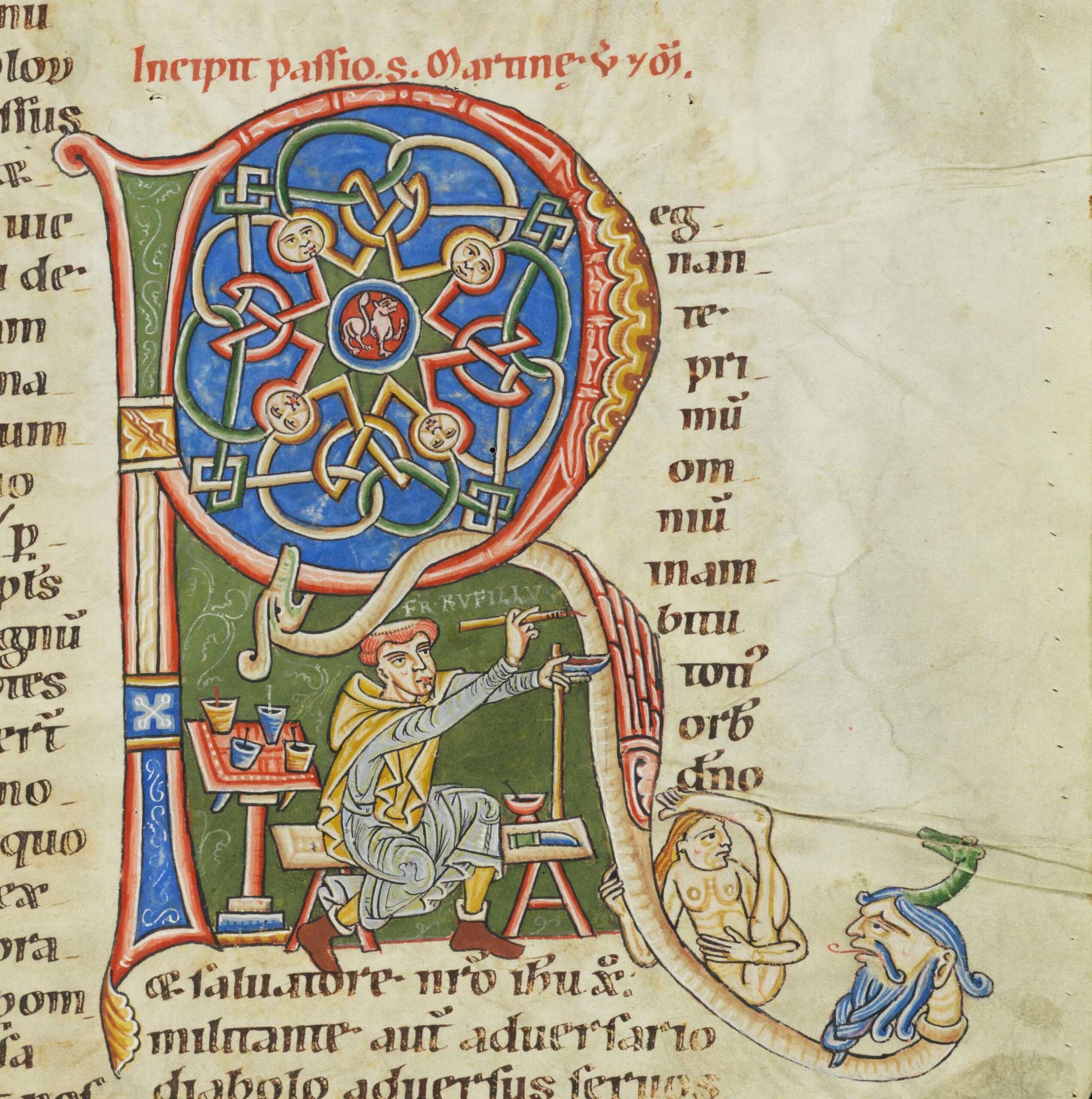 Rufillus inside a letter R (Cologny, Fondation Martin Bodmer, Cod. Bodmer 127, fol. 244r, late 12th century)