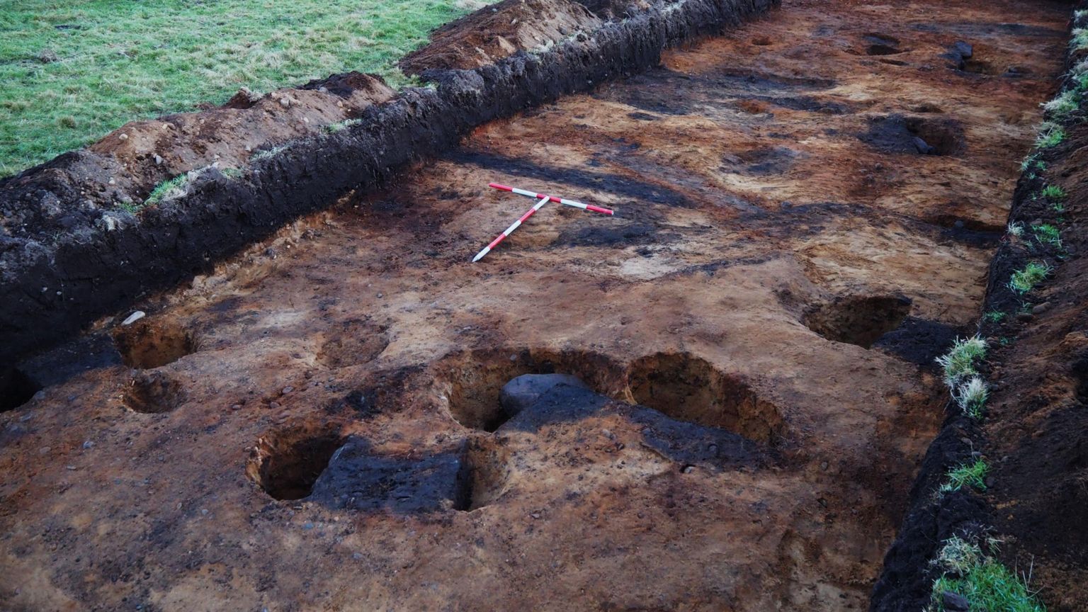 Deep post holes reveal the location of the remains of an Iron Age roundhouse. Photo by Scottish Water, Steven Birch and Andy Hickie
