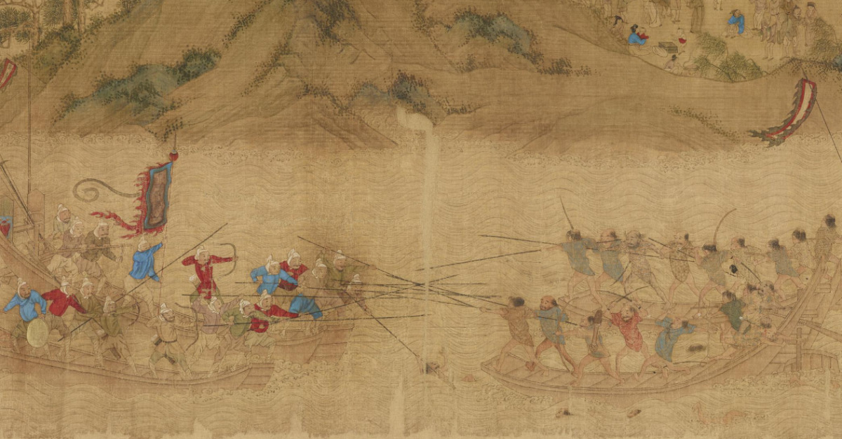 A scene of Ming dynasty soldiers battling Japanese pirates known as Wako in Wako Zukan, a picture scroll made in 17th-century China. Image by the Historiographical Institute, CC BY 4.0