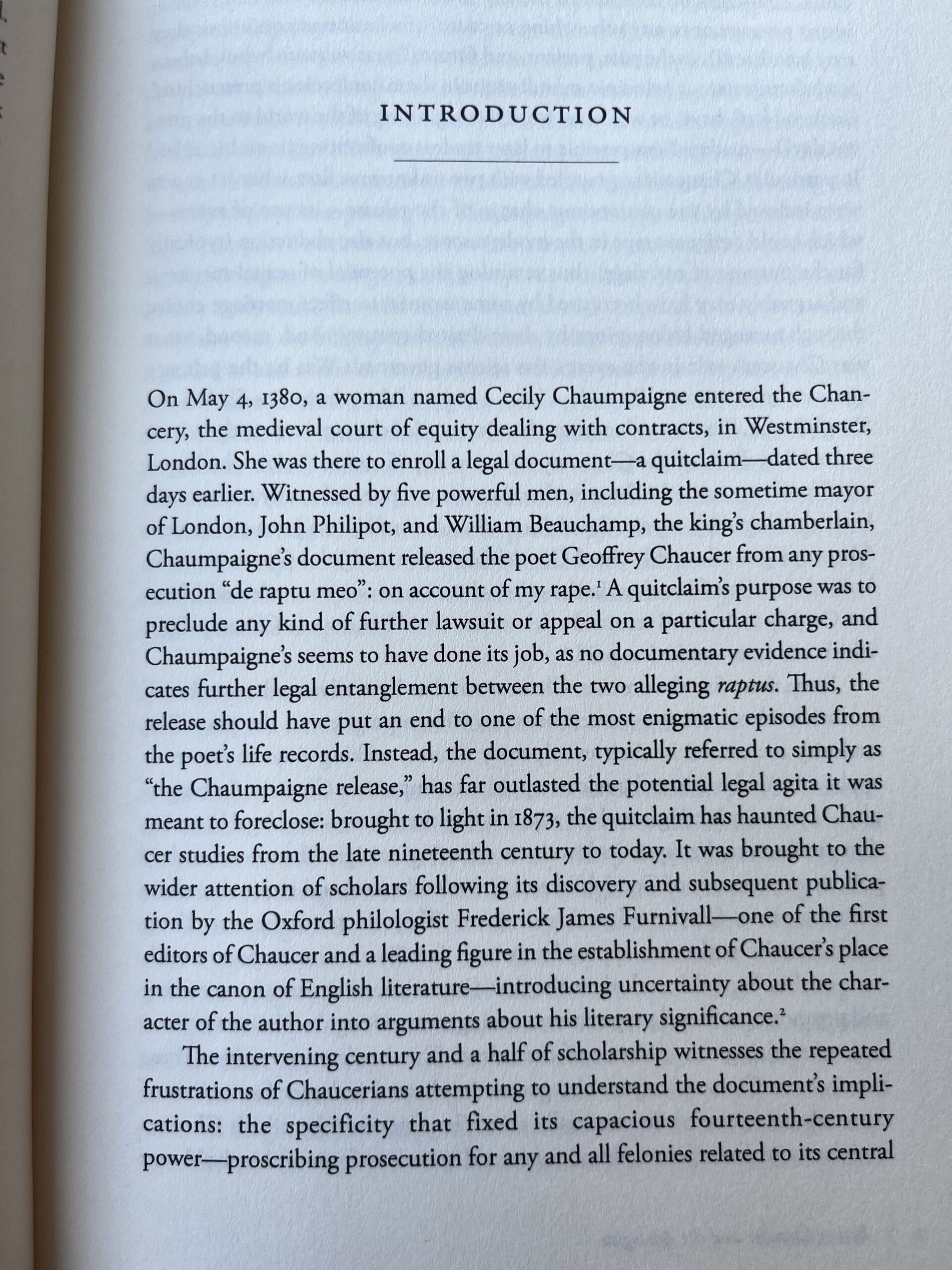 To learn more about this debate, please see: New Archival Evidence Raises Questions About Geoffrey Chaucer’s Rape of Cecily Chaumpaigne