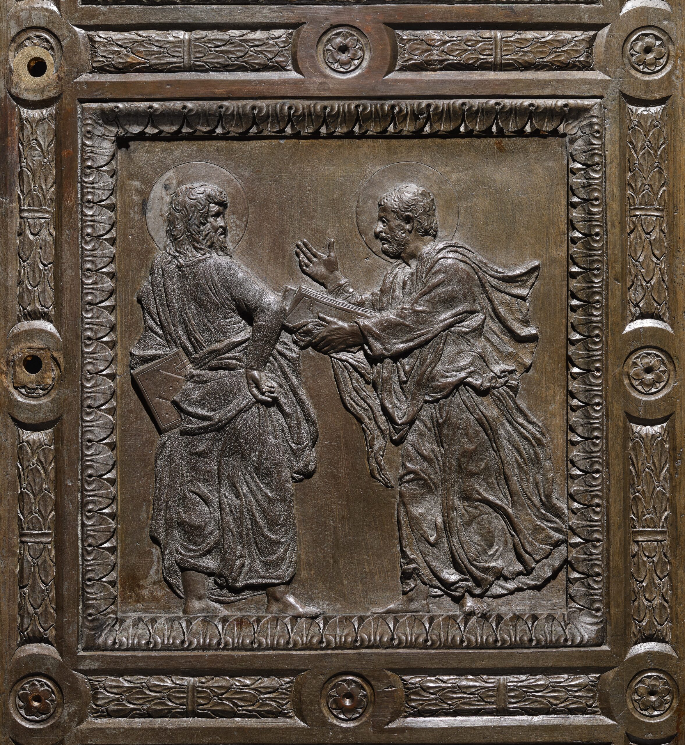 Commissioned by the Medici family, the two doors represent one of the most innovative examples of Donatello’s sculptural work during his mature artistic career. Each door consists of two panels cast using the lost-wax technique, a sophisticated method that allowed artists to produce detailed bronze reliefs.